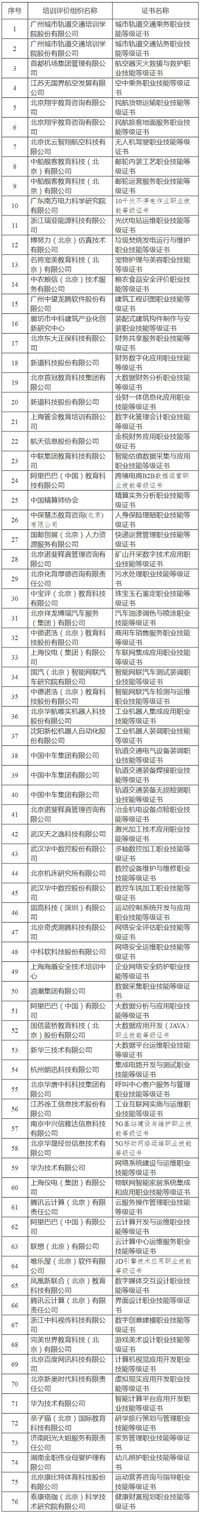 附件:参与1+X证书制度试点的第三批职业教育培训评价组织及职业技能等级证书名单