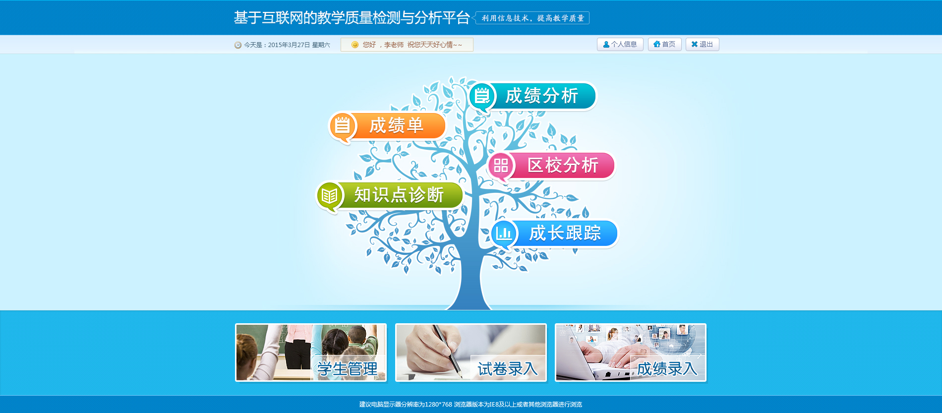 该平台采用国际上最先进的黑尔(Hale)指数增值评价理念,对学生的考试成绩进行科学的评价和进步分析。转变传统评价“以分数论成败”的观念,实现以学校自身的进步幅度,学生的进步幅度为指标的增值评价来衡量学生学习质量,教师、学校的教育质量。让教师及时的掌握班级、学生的学习进步幅度,知识点掌握情况,帮助教师科学的分析诊断教学中的不足和存在的问题,及时调整教学策略,激发教师教学动力,全面提升教学质量。根据考试结果,智能检测学生知识点掌握情况,跟踪分析学生的进步状况。科学准确的分析学生的不足之处,帮助学生有针对性的进行学习。让教育行政管理人员,摸清当地教学情况,充分了解各学校教学质量情况,为教育局做出合理的教学资源分配提供了科学的依据,促进教育均衡发展。