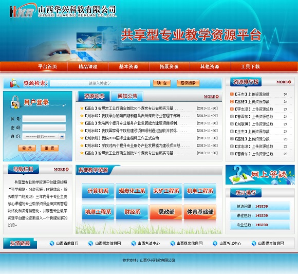共享型专业教学资源库管理平台把院、系和各专业的优秀教学资源都整合到专业资源平台上,让全院的师生都能够共享。通过平台学校还可以将经过实践形成的创新经验、办学理念以及优秀教师的资源分类整理入库,从而保留大量优秀的教学思想和教学方法,为学校教学水平的快速提高提供有效帮助。对教学视频、文档、图片、音频、试题、课件、教案和动画等各种专业教学资源的采集、收藏和管理,实现了专业教师自制教学资源的保存、管理和共享,实现了学习对专业教学中光盘、电子图书等资料的保存、管理和共享。通过平台架起教师、学生的交流互动平台。教师频道、学生频道的功能,上师生之间有更多的交流互动机会,让学生在课外也能够与专业教师进行更多的交流,有效提高教学质量和效果。