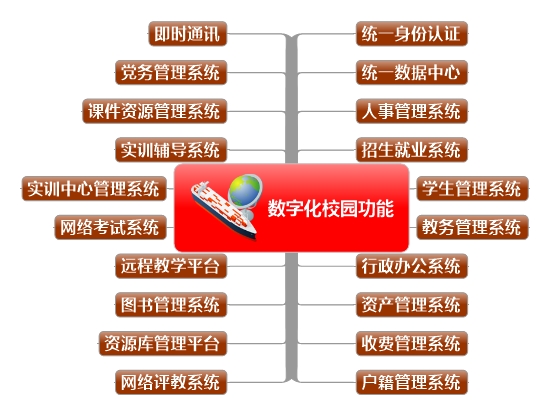 统一身份认证、统一数据中心、认识管理系统、学生管理系统、教务管理系统、行政办公系统等。